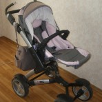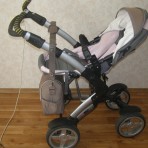 Красивая, редкая, удобная, модная немецкая коляска. Отличная проходимость в любые погодные условия, чехлы на кнопках, очень просто снимаются и стираются. классный дождевик (закрывает всю коляску почти...