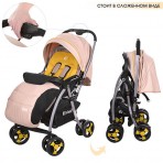 Детская коляска - имеет очень удобную складную конструкцию, от солнца ребёнка закрывает глубокий регулируемый капюшон, коляска порадует малыша комфортным сиденьем с регулируемой спинкой, внизу есть регулируемая подставка для ног. Детская коляска имеет съёмный страховочный бампер и надежный ремень безопасности, которые гарантирует малышу максимальную безопасность, коляска имеет чехол для ножек.