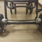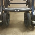 Ширина шасси — 61 см. Передние колеса сдвоенные, поворотные, диаметром 22 см. Фиксируются ногой, наклоняться не нужно. Есть небольшое крыло сверху, чтобы ребенок не попал ногой в колесо. Задние колеса одинарные, диаметром 26 см. . Коляска легко складывается. В собранном виде получается 90×61×40 см. Колеса легко вращаются, ход плавный и мягкий. Коляску легко везти одной рукой.