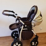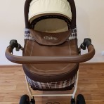 Алюминиевая рама, оба модуля (и люлька, и прогулочный) устанавливаются в одном из двух удобных положений, колеса надувные с подшипниками, складывается коляска по типу «книжка».