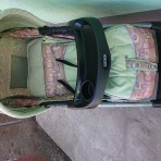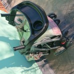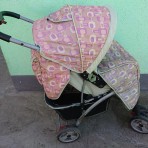 Лёгкая в управлении. Столик по желанию можно снять. Так же есть кармашки на коляске. Колёса каучуковые. Немного выгорила ткань на солнце (на фото видно). Складывается легко.