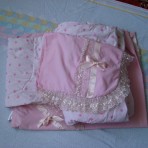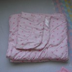 Постельный комплект в кроватку из сатина состоит из 4-х элементов: одеяло, 95*116 см, подушечка 30*55 см, и к ним пододеяльник на молнии и наволочка на подушку на молнии.