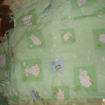 Комплект зеленого цвета с барашками, подходит и для девочки и для мальчика, в хорошем состояние.