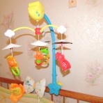 Электронный музыкальный мобиль "Мишки с друзьями" имеет 6 разных мелодий. Регулировка громкости, два уровня.