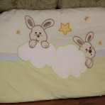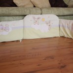 Постельный комплект Feretti- защита: состояние отличное, закрывает полностью всю кроватку, на змейке; балдахин: состояние отличное, пододеяльник в хорошем состоянии, на змейке; на наволочке и простыне (на резинке)небольшое пятнышко, цвет нежно салатовый.