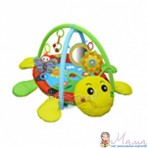 Соединительных колец и пяти игрушек (лягушка с разноцветными бусинами и колечками, мягкая пчелка с шелестящими крыльями, черепаха с цветными шариками внутри, 2 прорезывателя);