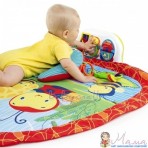 Игровой набор Коврик-столик 2 в 1 Bright Stars (9217) Kids II станет любимым развлечением вашего крохи с первых дней жизни. Сначала ему будет интересно наблюдать за своим отражением в безопасном детском зеркале или, лежа на спине, любоваться милыми подвесными игрушками. Немного повзрослев, кроха сможет дотянуться до погремушек и играть с ними. На игровой панели находятся кнопки активации звука, малыш может, прикосновением ножек, сам включать музыку. А когда ребенок еще немного подрастет, коврик можно трансформировать в музыкальный развивающий столик. Купить игровой набор Коврик-столик 2 в 1 Bright Stars – это предоставить ребенку яркое и привлекательное место для проведения досуга, развивая при этом мелкую моторику, зрение, слух и координацию движений.