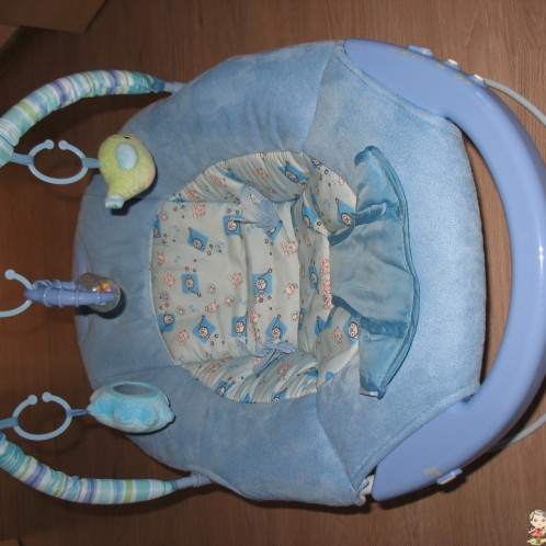 над сиденьем установлен носитель, к которому подвешиваются игрушки;