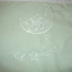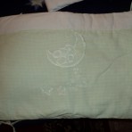 Защита на кроватку (4) - светло салатового цвета,у изголовья - вышивка мишка на луне, простынь (белого цвета,на резинке),подушка белая(наволочка в тон защите).Очень хорошее состояние. Ходунки Джоби 31...