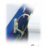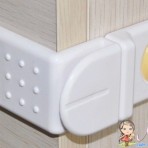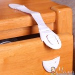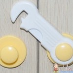 Универсальный гибкий замок Кенгуру (фото 1). Он очень прост в установке и не позволяет ребенку без вашего ведома куда-то забраться или взять что-нибудь без спроса. Устанавливается с помощью липучек, расположенных на замке.