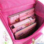 Внутренние отделения с разделителями. За счёт вертикального размещения и фиксации учебников разделители помогают ребёнку удерживать баланс.
