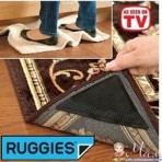 Набор антитравмаических держателей для ковров Ruggies. Больше ковры, коврики, подсилки не будут сдвигаться с места и ни вы, ни Ваш ребенок не будете спотыкаться. В набор входит 4 резиновых уголка и 4 бумажных уголка. Просто приклейте уголок к ковру, плотно прижмите и встаньте на угол ковра, таким образом, закрепив уголок. Крепится к любой плитке, паркету, линолеуму.