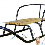Классические универсальные санки . Изготовлены из овальной металлической трубы. Сидение санок изготовлено из деревянных планок, которые покрыты прозрачным лаком.Габаритные размеры (длина*ширина* глубина),м:0,18х0,85х0,4.