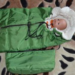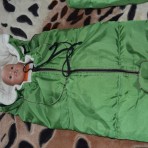 универсальный конверт с рождения до трех - четырех лет. Можно использовать в коляске в санках. есть ремни крепления, очень теплый и удобный.Ваш малыш всегда будет в тепле и защищен от ветра.