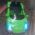 Спортивный электромобиль ездит со скоростью 3км/час, оснащен зеркалами заднего вида, блестящими дисками, удобным одноместным сидением, ремнями безопасности, имитацией лобового стекла.