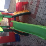 Большой, яркий, разноцветный двухуровневый игровой центр предоставляет возможность для подвижных игр на открытом воздухе для детей разного возраста.