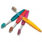Эти щетки предназначены именно для чистки детских молочных зубов. Специальная толстая ручка, с которой не соскальзывают детские пальчики, и мягкая щетина с закругленными кончиками для нежных десен делают эти щетки идеальными для детей.Толстая ручка особенной формы. Мягкие, с округленными кончиками щетинки.С нее не соскальзывают детские пальчики. Нежно обращаются с детскими деснами, не повреждают их.