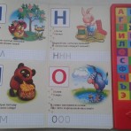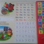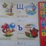 Сбоку книжки размещены 33 кнопки со звуками букв русского алфавита и забавными фразами из мультфильма.