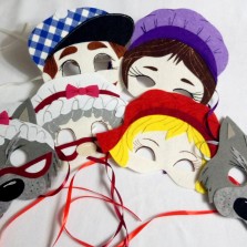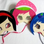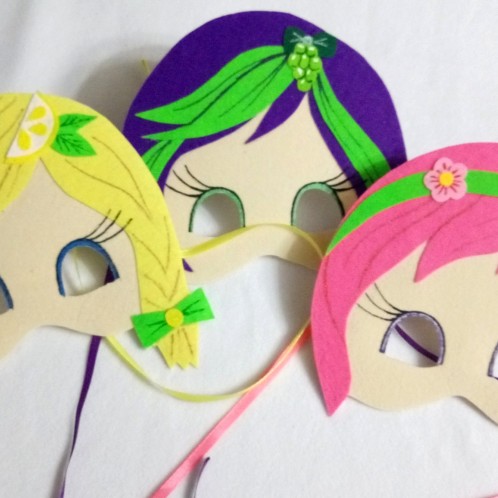 Маски из фетра по мультфильму Шарлотта земляничка и девочки ягодки: вишенка, лимон, сливка, черничка, малинка, апельсинка, виноградинка, земляничка.