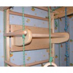 При производстве спортивного комплекса используется массив сосны высокого качества, все детали тщательно обработаны и покрыты несколькими слоями безопасного лака без запаха, что увеличивает срок службы спорткомплекса, все видимые винты закрыты заглушками. Применение буковых перекладин позволяет выдерживать нагрузку до 120 кг