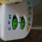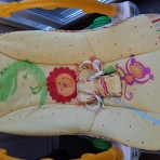 Две игрушки можно разместить в 6 различных точках на панели: высоко вверху, чтобы смотреть на них или внизу ― для досягаемости ручкам малыша. Дуги с игрушками легко поворачиваются в стороны, если надо положить или взять малыша. Успокаивающие вибрации успокаивают ребенка, также имеется 8 различных мелодий. Требуется 3 батарейки AA и 1 D.