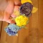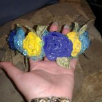 Розочки выполнены в технике лепка, украшены глитером и бусинами, листики из ткани. Такой обруч легко дополнит наряд вашей принцессы
