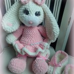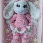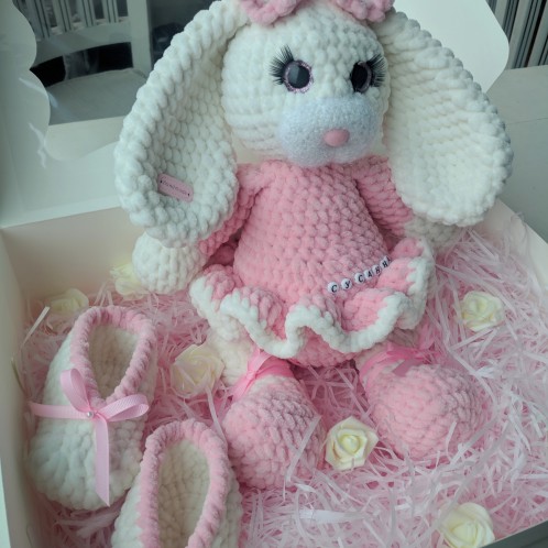 Красивый и нежный подарочный набор для новорожденных - невероятно мягкая плюшевая игрушка и нарядные пинетки, связаны крючком из гипоалергенной детской пряжи, наполнитель холлофайбер, глазки и носик на безопасном креплении, буквы и бирочка надежно пришиты.