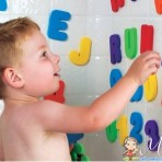 Когда буквы и цифры влажные, они прилипают к стене ванной, чтобы составлять из них имена, слова и различные сочетания слов и цифр.