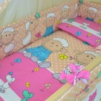 Расцветки разные! Как для мальчика, так и для девочки (совы, мишки, жирафики, овечки, бабочки, пчелки: зеленые, бежевые, сиреневые, голубые, розовые)! См. больше фото расцветок в постельных комплектах.