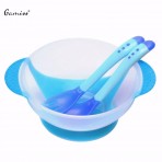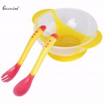 Ложка из силикагеля, который меняет цвет в зависимости от температуры еды (при температуре еды выше 40 градусов цвет вилочки и ложечки становится белым). Приборы из мягкого материала, которые не нанесут травму Вашему ребенку.