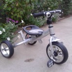 - Колеса с «шинами» из резины (накачиваются), тормоз на задних колесах;
