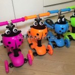 Детский трехколесный самокат-беговел с сиденьем и родительской ручкой BEST SCOOTER 4в1 "Божья коровка"