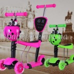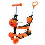 Детский трехколесный самокат-беговел с сиденьем и родительской ручкой BEST SCOOTER 4в1 "Божья коровка" (от 1 года до 8 лет)