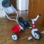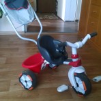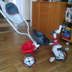 Детский прогулочный трехколесный велосипед французской фирмы Smoby. Очень удобный, достаточно легкий, ручка- толкатель - съемная, сумочка на липучках, Можно заблокировать руль, чтобы ребенок сам мог к...
