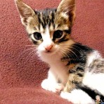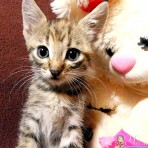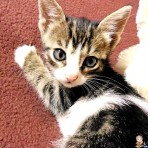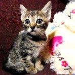 Фото № 7,8. Девочка, 1,5 месяца. Гладкошерстная, полосатенькая, с белым кончиком на хвостике, как кисточкой. Очень милая, ласковая и спокойная. В отличии от своего братика и сестрички она поспокойней. Идеальная на коленях-лежащая мурчалка-дырчалка.