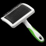 Самоочищающаяся щетка для вычесывания кошек и собак. Нейлоновые зубцы мягко и безопасно проходят сквозь шерсть животного, удаляя отмерший подшерсток и частички грязи. При нажатии на кнопку зубцы самоочищаются, что очень удобно при большом объеме работы. Стимулирует кожу животного, сохраняет природный жировой баланс. Эргономичная форма и антискользящая прорезиненная ручка облегчат работу. Отлично подходит для мелких и средних пород животных.