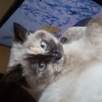 Кошечка привита и проглистована. Окрас Торти поинт (Tortie point), т.е. черепаховый.