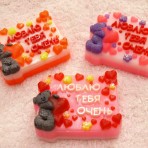 Красивое сувенирное мыло - отличный подарок на любой случай, как взрослым так и детям. Мыло антиалергенно, содержит полезные масла для кожи. Косметические пигменты и ароматизаторы. Не сушит кожу.
