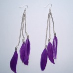длинные серьги с фиолетовыми перьями
