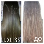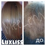 Luxliss процедура достаточно мягкая, и может быть использована для все типов волос .После окрашивания так же рекомендуется проводить эту процедуру так как цвет сохраняется еще дольше и становится более интенсивным .