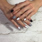 Наращивание ногтей гелем, покрытие гель лаком, комби маникюр, дизайн.
