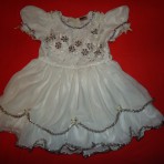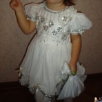 Сдаю напрокат платье. На возраст 2-3 года. На фото ребёнку 2,9. Состояние отличное. Грудь общита снежинками, а края и горловина мелким дождиком в форме бус. Ширина регулируется поясом, змейка длинная ...
