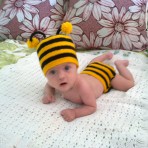 Костюм "Пчёлки" состоит из трусиков на пуговичках и шапочки с усиками. Подойдет на малыша от 0 до 6 месяцев.