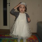 Нарядное платье, молочного цвета - трикотаж и органза, юбка баллон, молочные колготки, молочная повязка со снежинкой, серебристое болеро. Возможен прокат туфелек вместе с нарядом. - 100 грн.