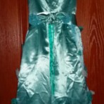 Платье карнавальное. Длина - 89 см, длина плеча - 6 см, ПОГ - 32 см, ПОТ - 32см. Спинка на молнии. Цвет светло-зеленый.Вшит подьюпник,без колец,смотрится очень стественно,нашиты цветочки. Персонажа можно придумать самостоятельно: фея,мавка,березка,весна,за счет цвета обшить дождиком и будет елочка))) все что угодно,полет фантазии