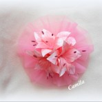 Вуалетка Розовое облачко – это изумительно-нежная работа ,состоящая из трех лилий с тонированными вручную лепестками и воздушного микрофатина .Она подойдет для фотосессий,выпускного бала,а также для любого праздника юной леди к ее шикарному платью.