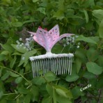 Гребень металлический, зубья на нем двойные, в волосах держится хорошо.
