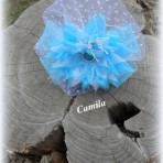 "Бирюза"- вуалетка для красавиц любого возраста.Выполнена из органзы. Фантазийный цветок,похож на георгин ,он очень легкий,создает ощущение невесомости. А тоненькие перышки и мелкий стеклярус п...