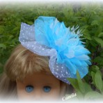 "Бирюза"- вуалетка для красавиц любого возраста.Выполнена из органзы. Фантазийный цветок,похож на георгин ,он очень легкий,создает ощущение невесомости. А тоненькие перышки и мелкий стеклярус подчеркивают и дополняют образ вуалетки в целом.