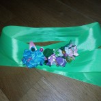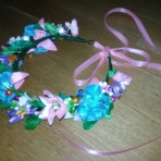 Пояс и веночек украшены весенними цветами (ручная работа).